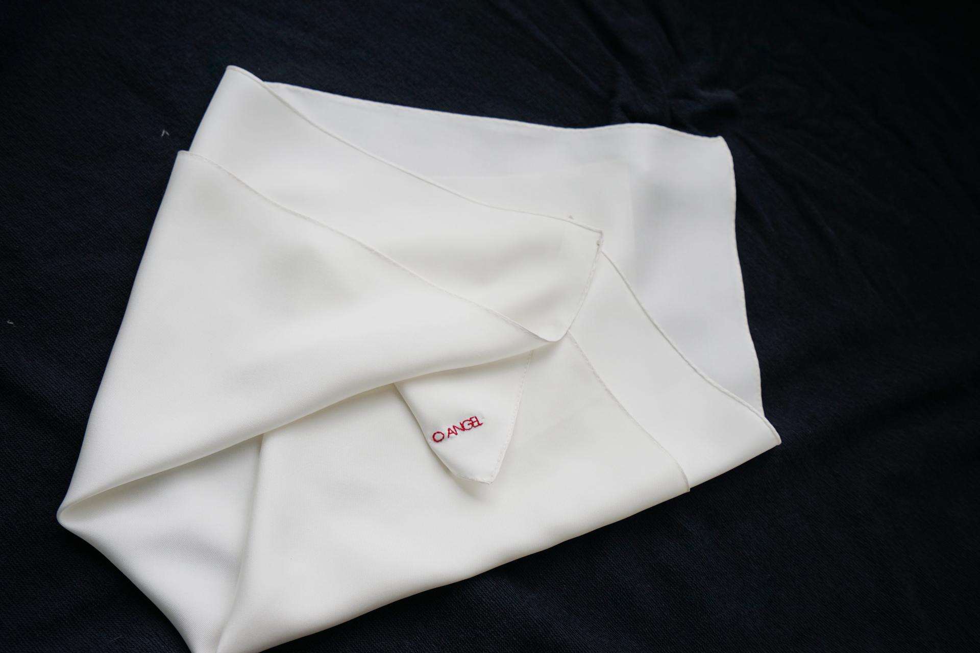 따뜻하고 부드러운 밀크 화이트 컬러로, 실크 특유의 광택과 조화를 이룹니다. 포인트로 레드 로고 자수를 더해 클래식한 분위기를 완성했습니다.